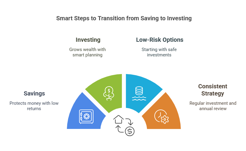 Making the transition from saving to investing is an important step toward financial independence. By building a solid savings foundation, choosing low-risk investments, and maintaining a balanced approach, you can grow your wealth while minimizing risks.